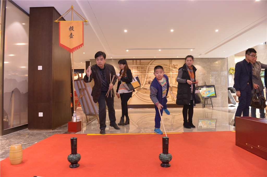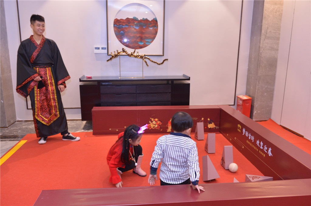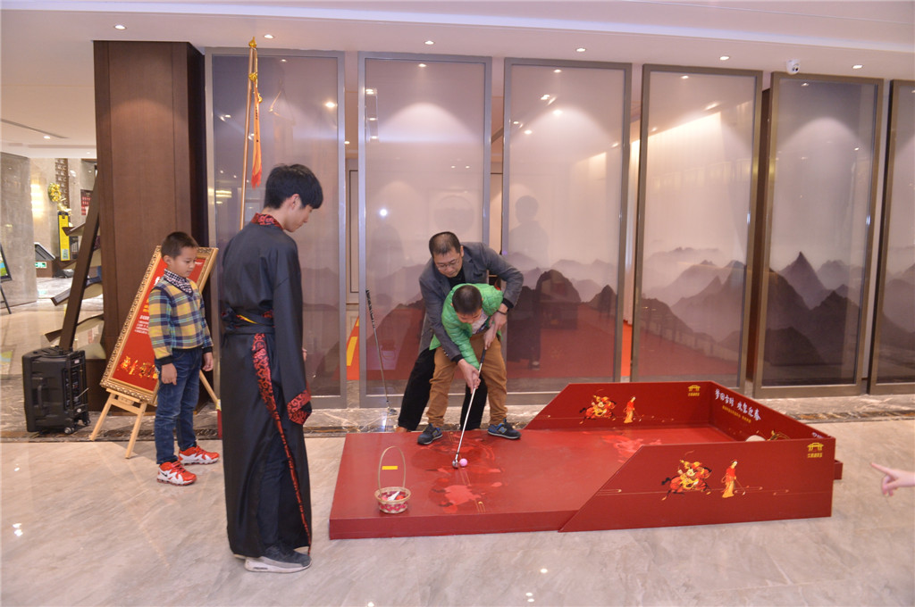 在這里我們只按照古代的規(guī)則交易。只通行古代的貨幣,加上文牒做古代的通行證。一張通關文牒,貨真價實的銅錢,以帥旗裝點互動區(qū)域…… 玩轉(zhuǎn)古代競技項目:捶丸、木射、撈金魚、投壺。每種不同的運動,都有起源,來自不同的朝代。每個古法互動都有身著相應年代服飾的工作人員指引。先秦時代的投壺比誰投中的多;唐代的木射是現(xiàn)代保齡球的起源;起源于唐代的撈金魚,是最受小朋友喜愛的;明朝捶丸類似于現(xiàn)代的高爾夫球,一桿進洞。過五關、斬六將。來賓可以取得重重的古代關卡的證明,獲得蓋章,以賺取更多的銅錢。